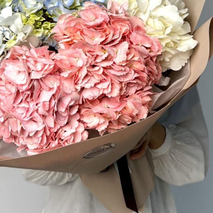 “Эвкалиптическая роскошь” гортензия и пионовидная кустовая роза