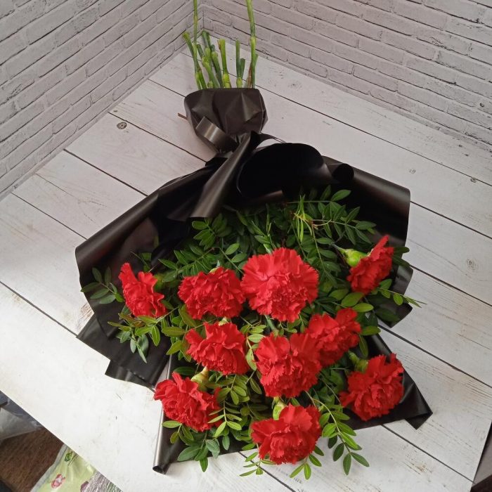 Гвоздика красная – 10 шт.Фисташка – 5 шт.Упаковка дизайнерская – 1 шт.