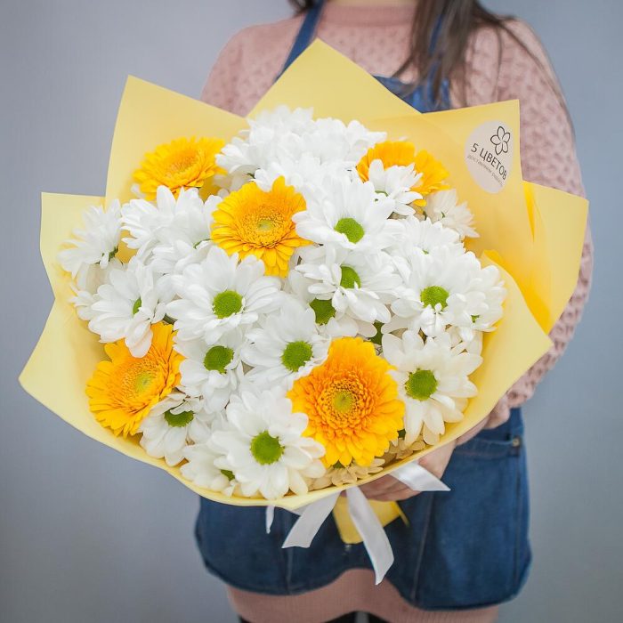 Букет из хризантемы и желтых гербер