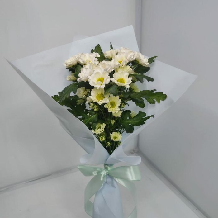 Хризантема кустовая Сантини – 3 шт.Дизайнерская упаковка – 1 шт.
