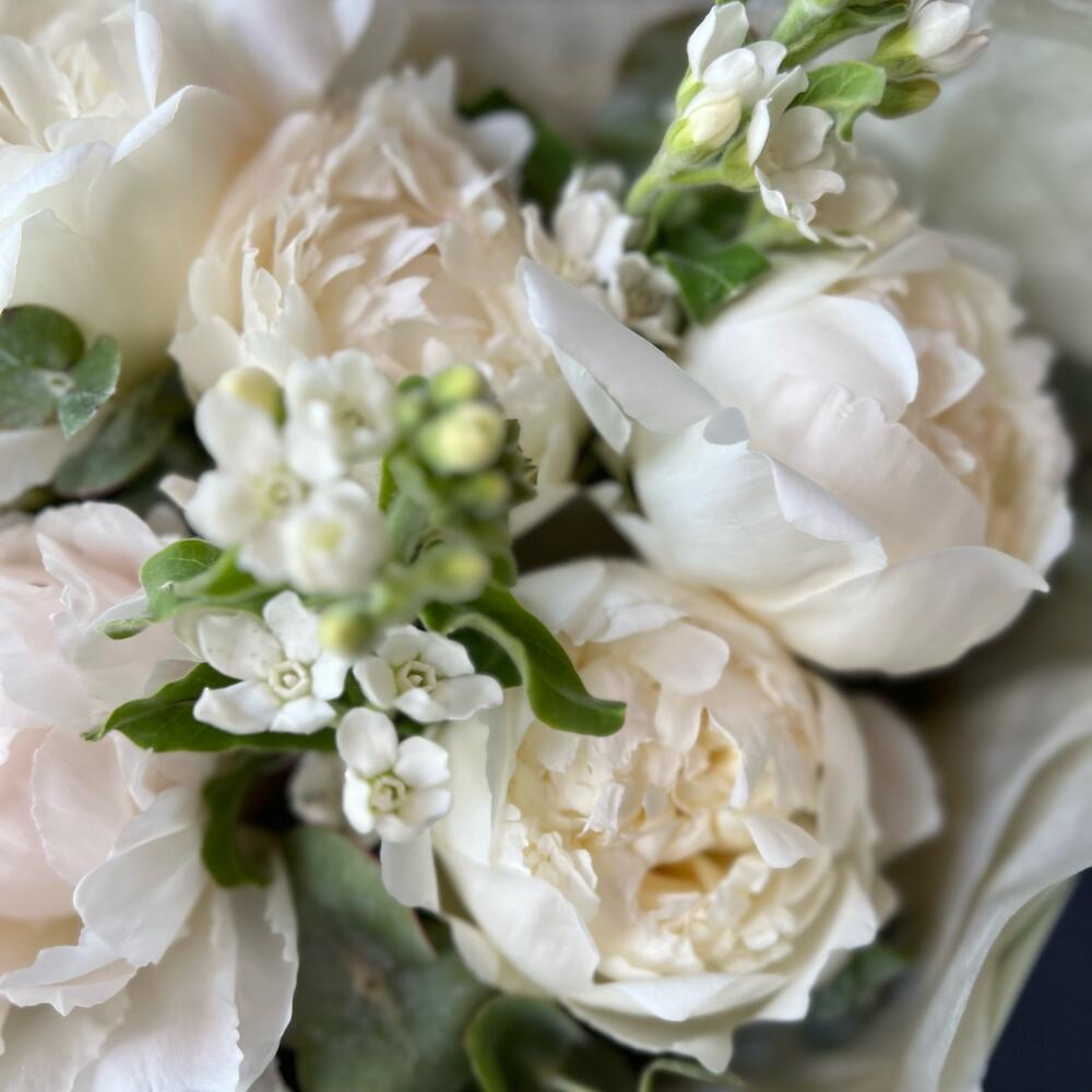 Нежные объятия Букет из пион видной розы
