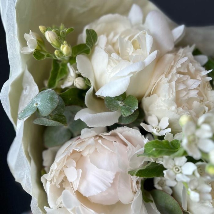 Букет пионовидных роз с эвкалиптом