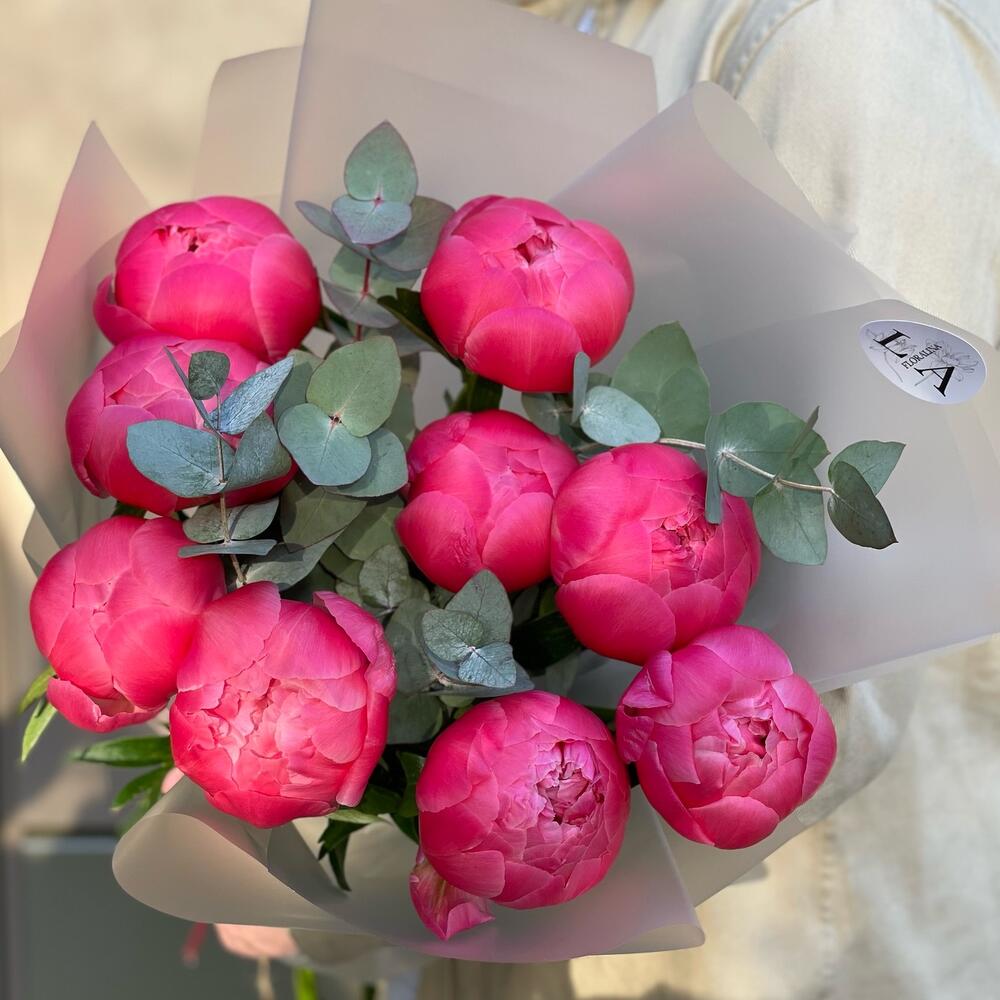 Букет из пионов с эвкалиптом