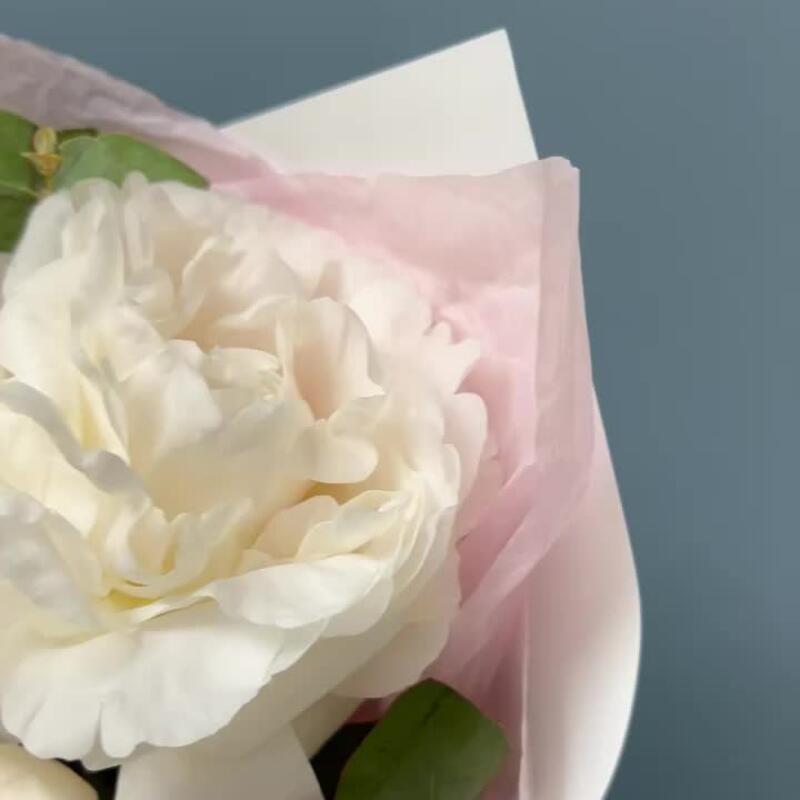 Эвкалипт – 1 шт.Тишью – 1 шт.Упаковка дизайнерская – 1 шт.пион mother’s choices – 3 шт.