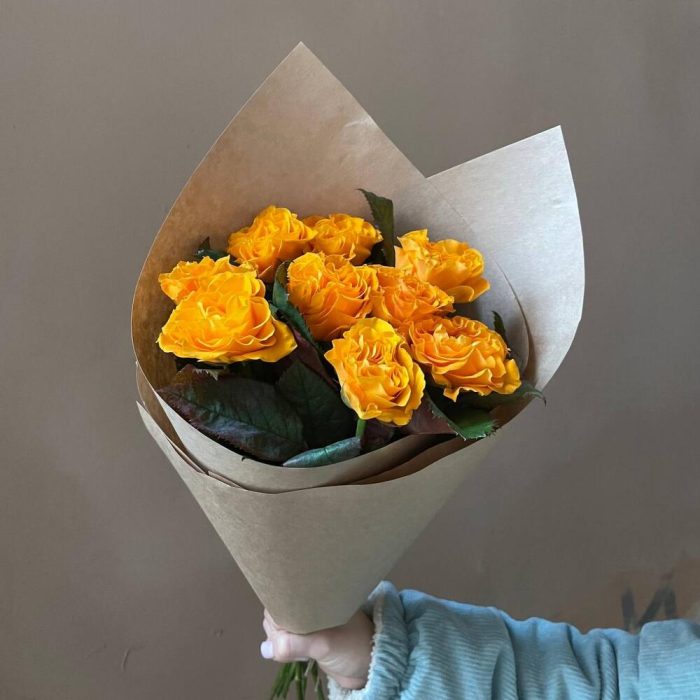Крафт упаковка – 1 шт.роза оранжевая россия – 9 шт.
