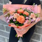 Авторский букет с пионовидной розой и маттиолой