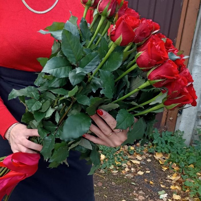 Букет 15 шт красных роз 60см