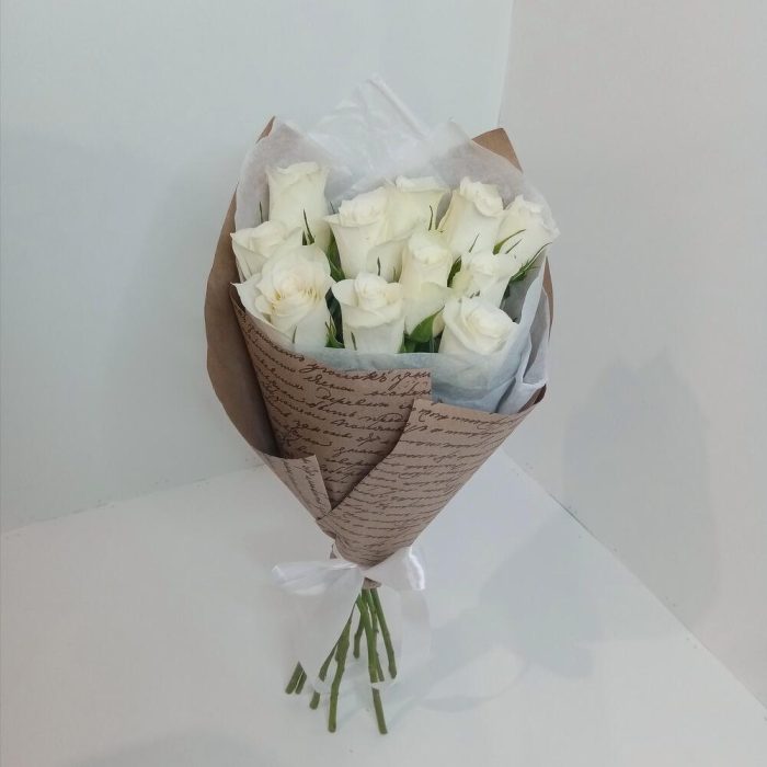 Букет из 11 роз белых в крафте