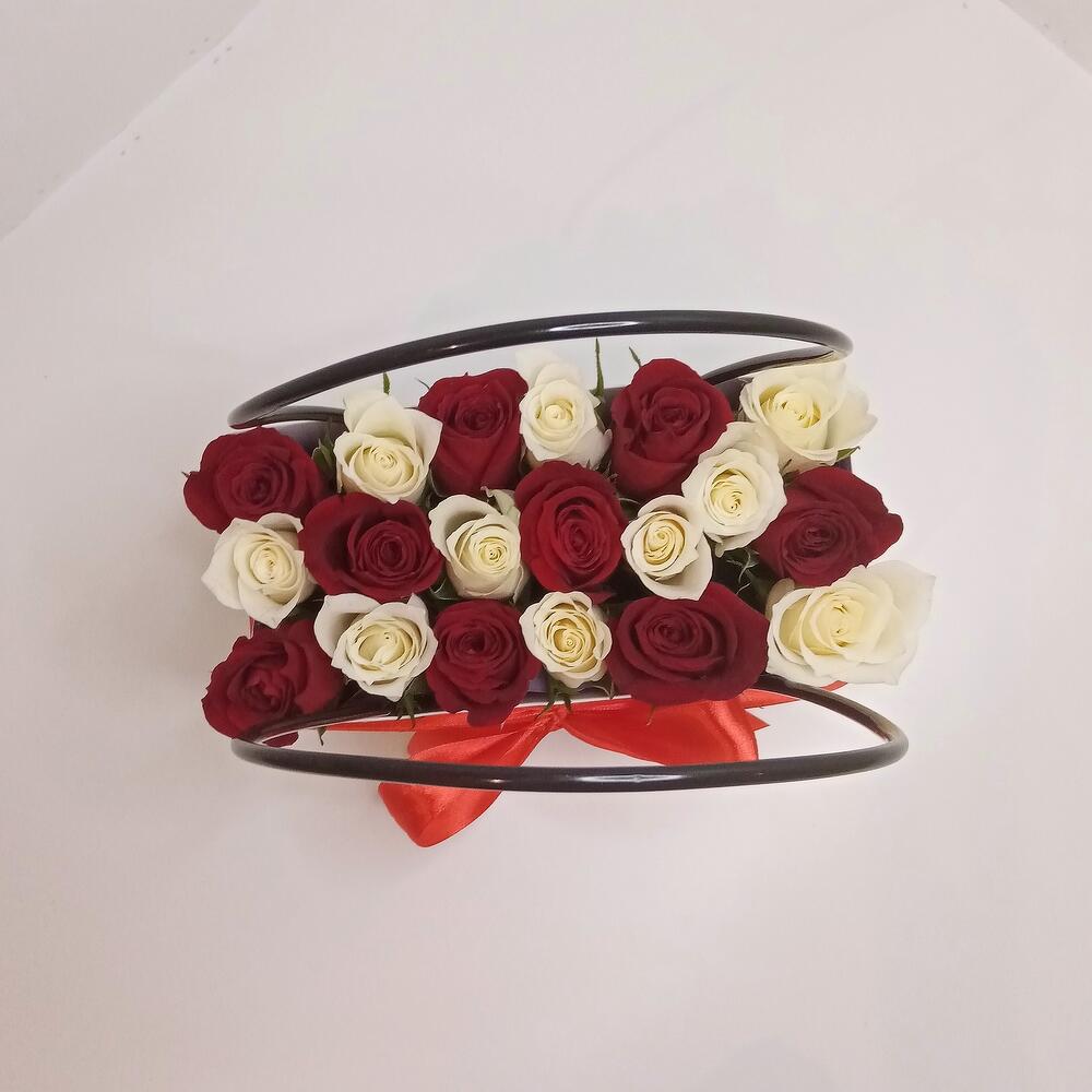 роза кения микс – 19 шт.Флористический оазис – 1 шт.Сумочка – 1 шт.