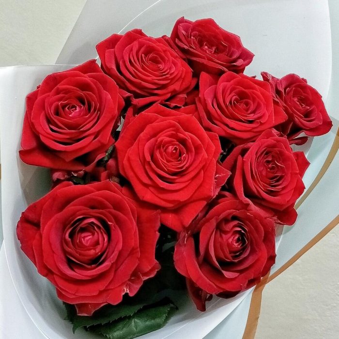 Лента атласная – 1 шт.Пленка дизайнерская – 2 шт.сортовая роза red naomi – 9 шт.
