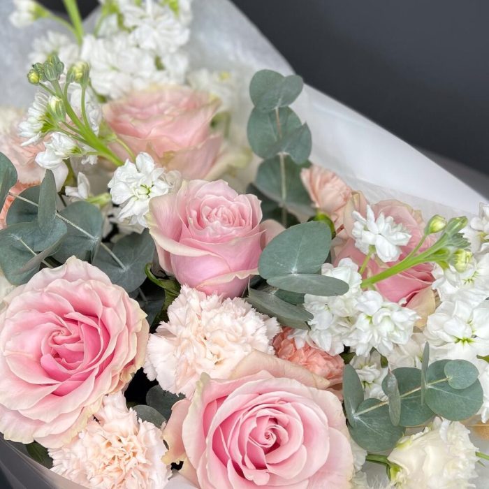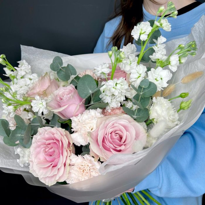 Букет из нежной маттиолы и роз