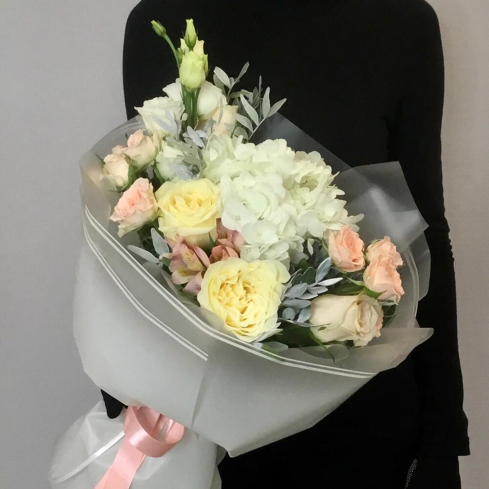 Букет с гортензией и розами «Янь»