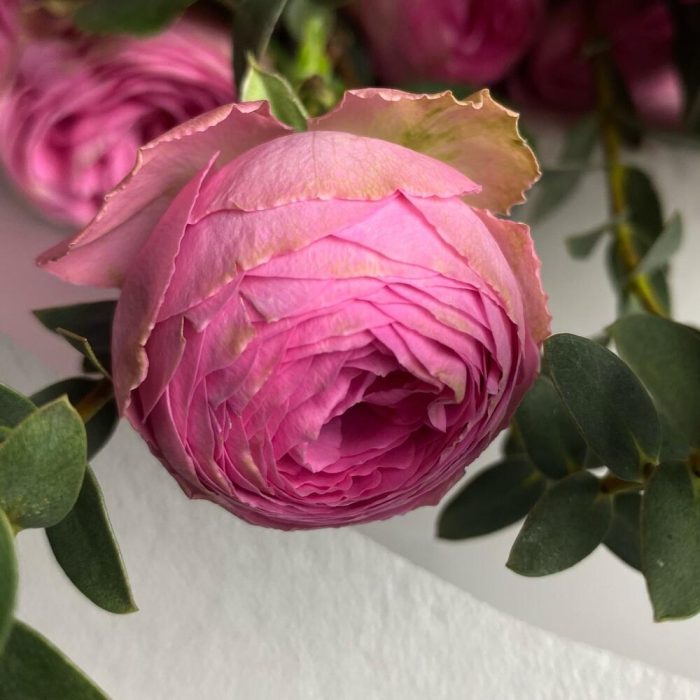 кустовая роза жизель – 5 шт.Эвкалипт – 1 шт.Пленка матовая – 1 шт.