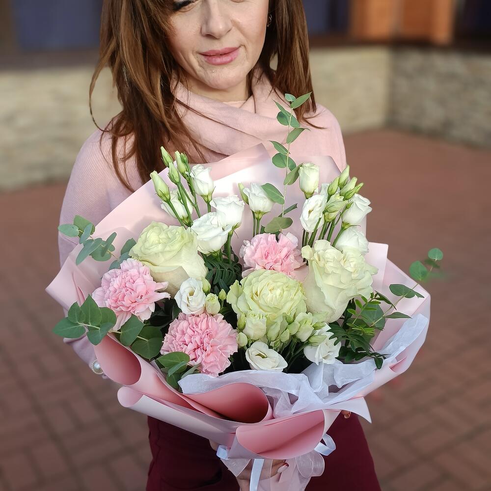 Категории: Гвоздики, Лизиантусы, Розы