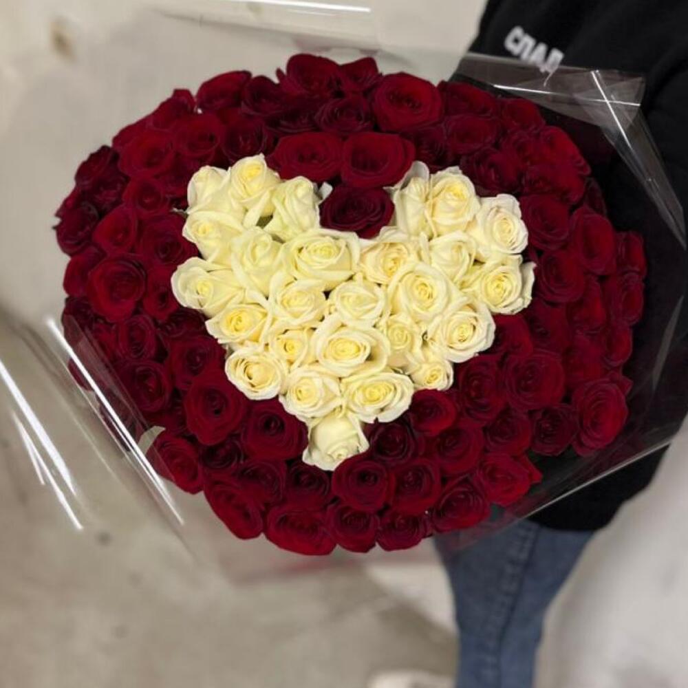 Розы 101 штука 70 см СЕРДЦЕ