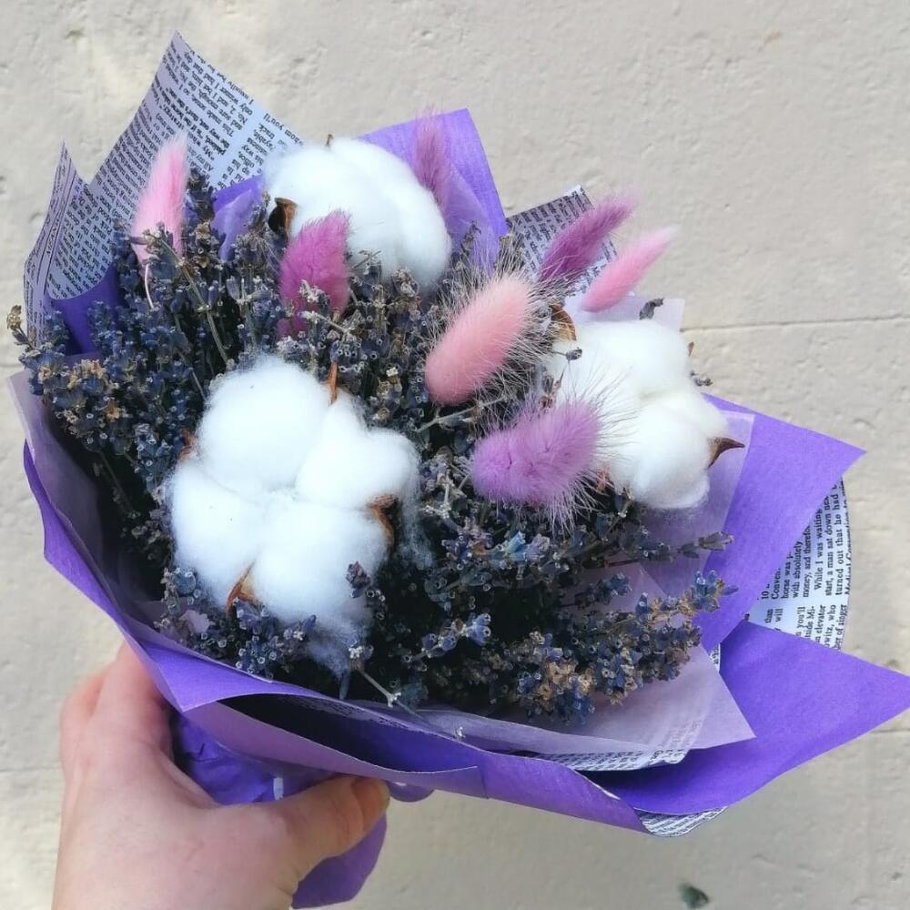 Букет из сухоцветов Лаванда с хлопком