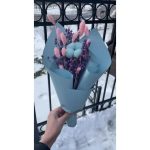 «Лавандовое созвездие» Букет из розы, гвоздики, статица и хлопка