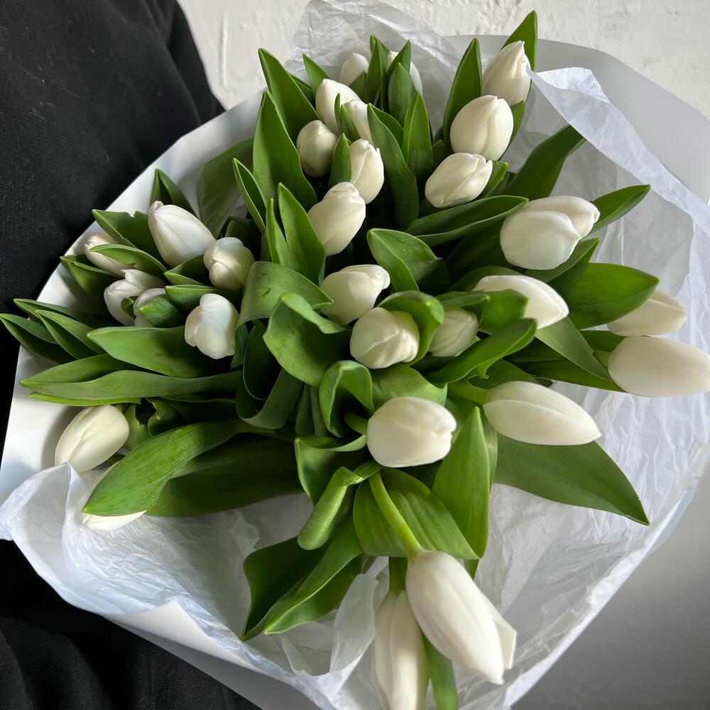 Букет 29 белых тюльпанов